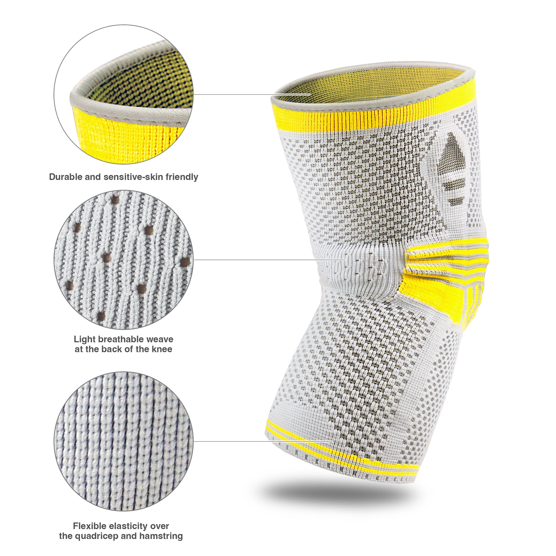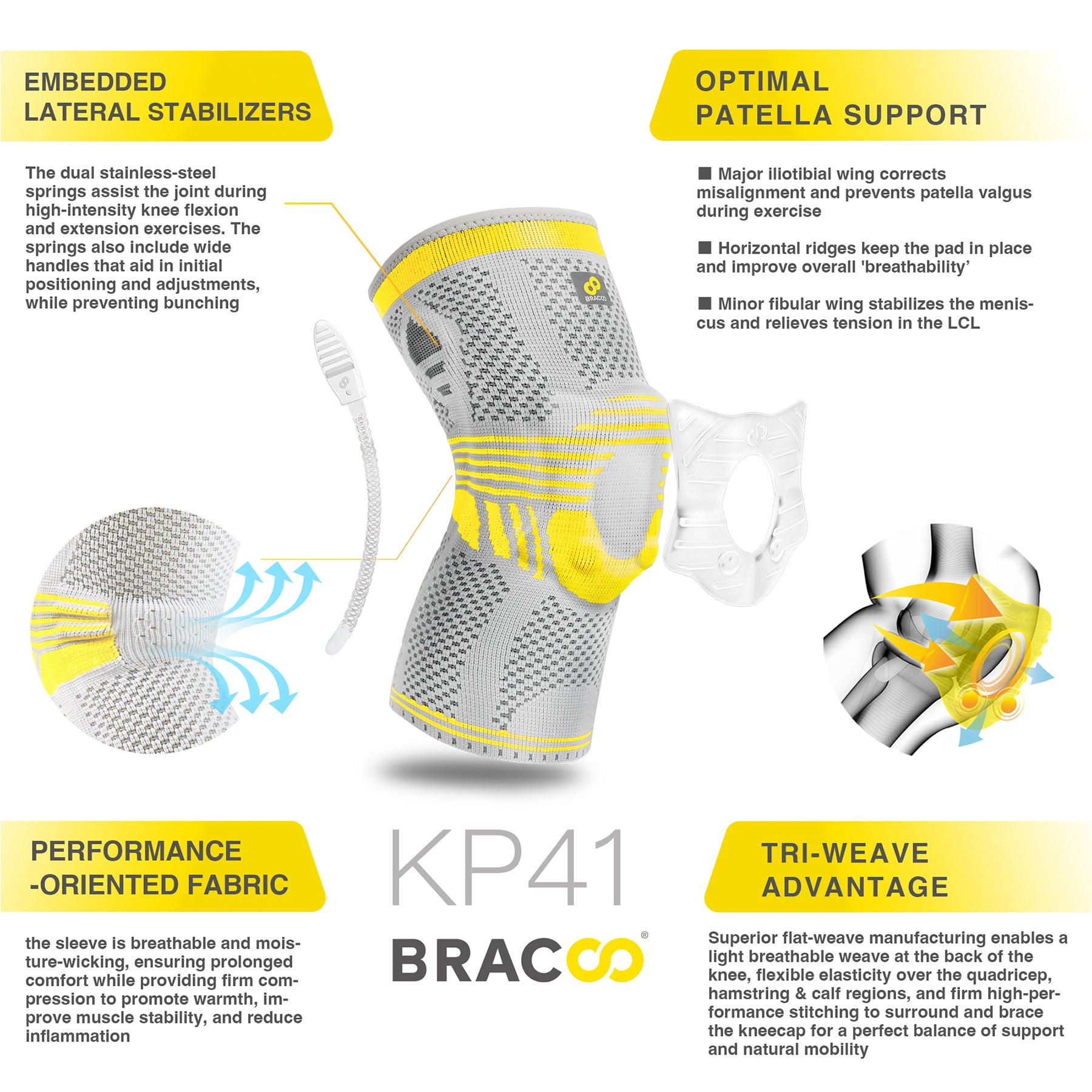 - OPTIMAL KNEE SUPPORT featuring a patented ergonomically-profiled silicone pad ring, which curves to perfectly fit and protect the kneecap with a myriad of design elements to ensure a comfortable and correct alignment. Concealed stabilizers, combined with the 3D patella ring, makes KP41 form-fitting, giving a similar sensation to cupping your hands over your knee joint.